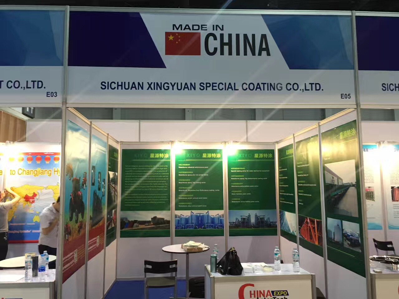 我公司展臺(tái)整個(gè)設(shè)計(jì)風(fēng)格以新穎大方,視覺舒適的主題體現(xiàn),使人一目了然,耳目一新,簡(jiǎn)明而不失純真的企業(yè)內(nèi)涵,作為公司的的活動(dòng)名片,充分發(fā)揮了公司的前景形象與典型的深刻印象,展示的產(chǎn)品主要有環(huán)氧富鋅漆,環(huán)氧鐵紅底漆,環(huán)氧封閉底漆,環(huán)氧云鐵中間漆,丙烯酸聚氨酯漆,丙烯酸脂肪族聚氨酯漆,水性涂料等眾多機(jī)械設(shè)備防腐優(yōu)質(zhì)產(chǎn)品。
